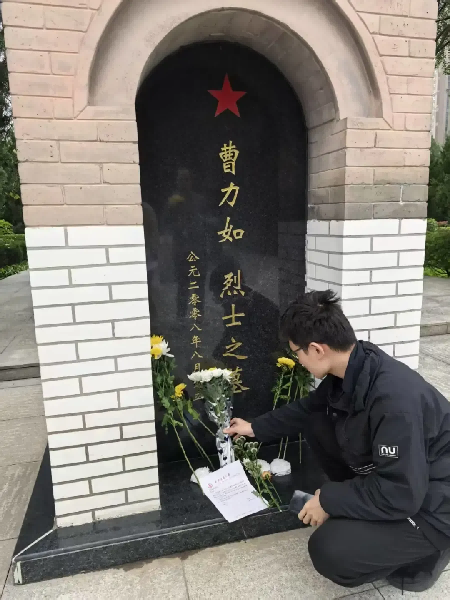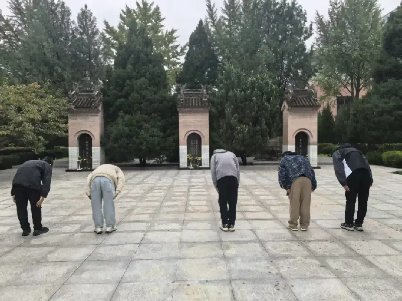 隨后,全體成員面向紀念碑肅立,默哀一分鐘,現場氣氛莊重肅穆,每個人都在靜默中追憶革命先烈的奮斗歷程。默哀結束后,成員們向紀念碑鞠躬致敬,表達對先烈的深切敬意。