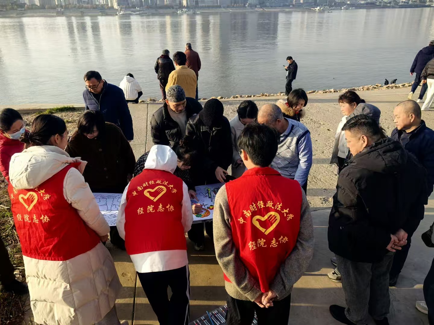 (通訊員:羅銀儀)暖陽映江,清風拂岸。為了響應保護長江的號召,中南財經政法大學經濟學院志愿者協會(以下簡稱“經院志協”)在2025年12月14日14:00到18:00于長江觀景第一臺開展了長江行動志愿活動,用行動守護長江的清澈與安寧。