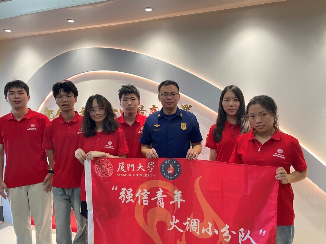 圖為廈門大學(xué)“強(qiáng)信青年-火調(diào)小分隊(duì)”與消防警官合影。袁夢婷 供圖。