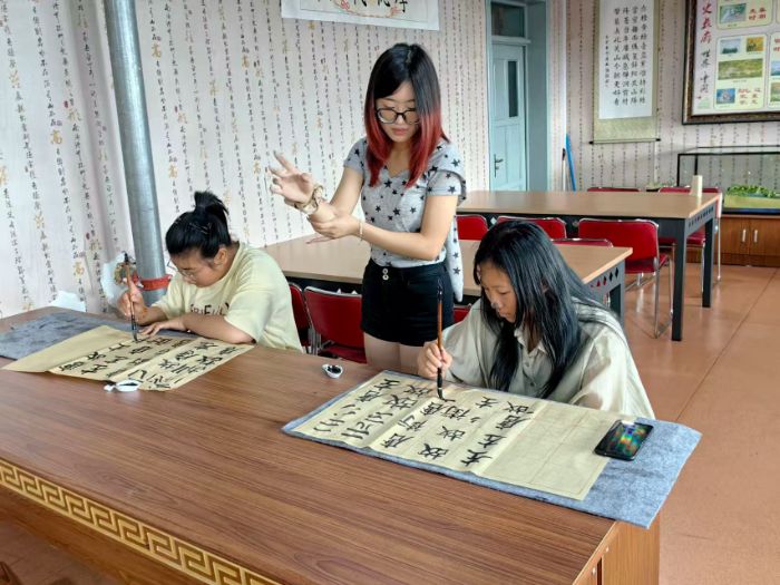 拓展課程上,實踐團同樣傾注了無限熱情與巧思。書法課上,孩子們在老師指導下臨摹《玄秘塔碑》,在一筆一劃中感受傳統文化韻味;民族歌舞課上,朝鮮族傳統歌舞被引入課堂,青春舞姿成為校園里靚麗的風景線;音樂課上,全體師生齊聲高唱《追夢赤子心》,激昂歌聲點燃每個人的熱情。