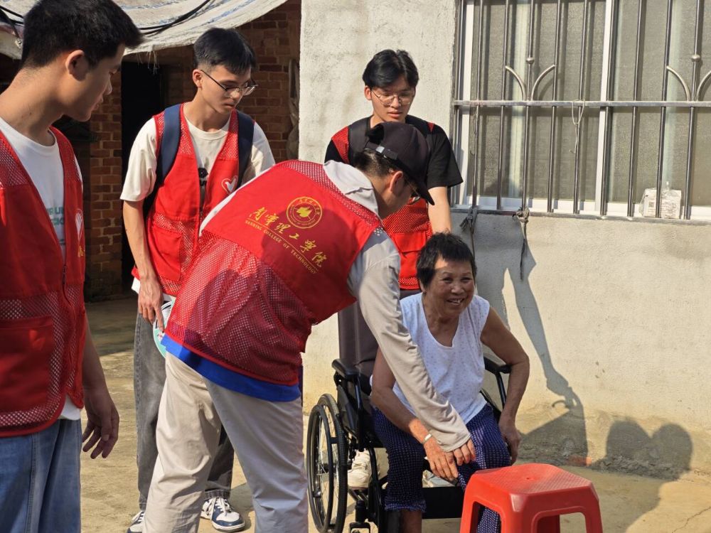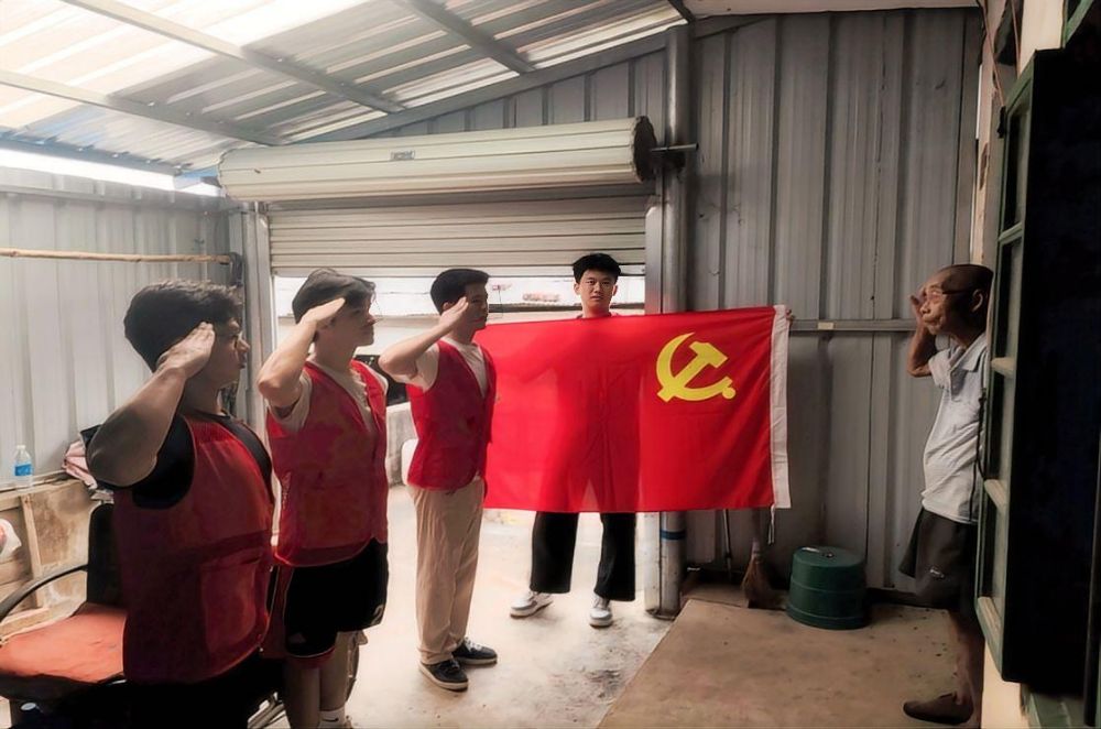 活動準備期間,團隊隊長梁積賀積極聯(lián)絡南寧市武鳴區(qū)政府,在政府支持協(xié)調下,順利與雙橋鎮(zhèn)下淥村村委對接,為活動開展筑牢基礎。活動當日,烈日炎炎,隊員們額間掛著汗珠,卻步伐堅定,懷揣對退伍老兵的敬意與慰問,赴兩位爺爺的“紅色之約”。