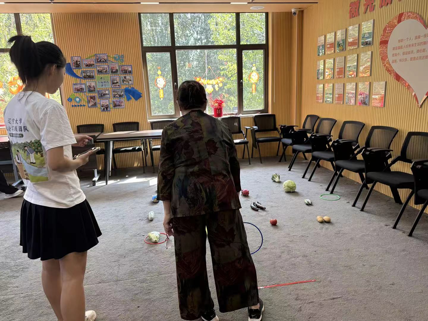 圖為團隊成員與老年人進行“果蔬套圈”活動