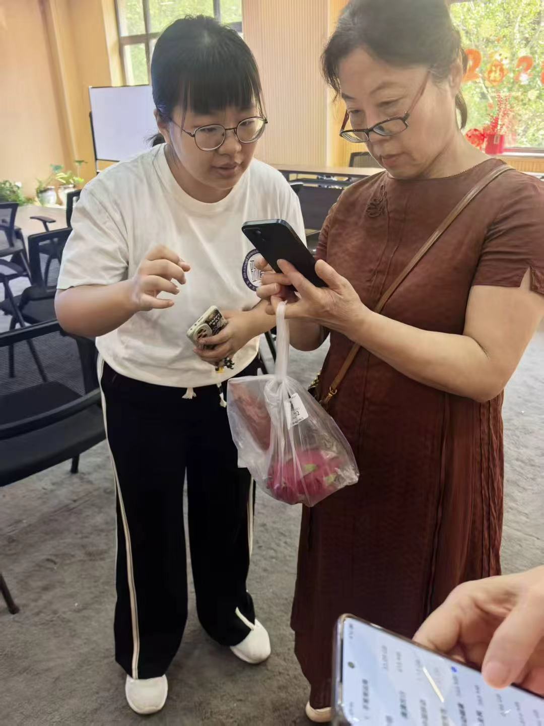 宣講結束后,為了幫助老年人鞏固所學知識,團隊精心設計了“果蔬套圈”互動環節——成功回答一個問題即可獲得五個套圈,只需回答對卡片上的問題,就能獲得新鮮的水果和蔬菜。“請問如何在手機通訊錄中添加新的聯系人啊?”“想自己的孩子們時,你知道如何打視頻電話看看他們嗎?”面對問題,老人們積極思考,有的還主動向身邊的團隊成員求助,現場氛圍熱烈而溫馨。這種“趣味游戲+知識鞏固”的模式,不僅讓老人們在輕松的氛圍中加深了對操作步驟的記憶,更激發了他們主動學習智能設備的興趣。