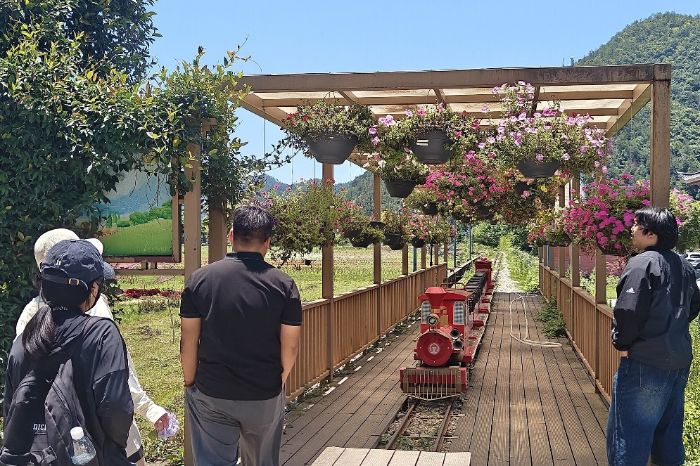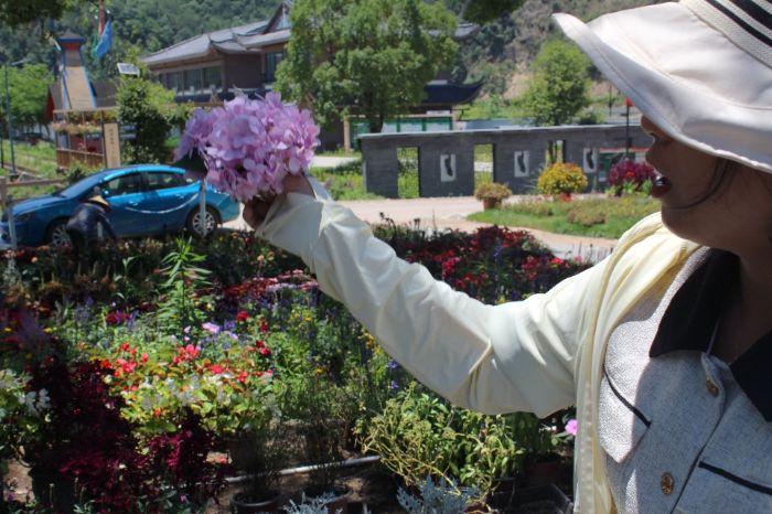 在村干部的帶領(lǐng)下,實(shí)踐團(tuán)隊來到了石浦花海。遠(yuǎn)遠(yuǎn)望去,大片的鮮花在風(fēng)中搖曳,像一片彩色的海洋,吸引了不少游客駐足拍照。村干部笑著介紹:“這片花海是去年打造的,總面積有兩百多畝,種了十幾種花卉,從春到秋都有花可看。”石浦花海現(xiàn)種植繡球、洋地黃、天竺葵等800余品種20余萬盆花卉,形成紫色浪漫、五彩斑斕、繽紛時節(jié)三大主題區(qū)塊。后續(xù),石浦村將利用花海資源持續(xù)發(fā)展其他的旅游項(xiàng)目。