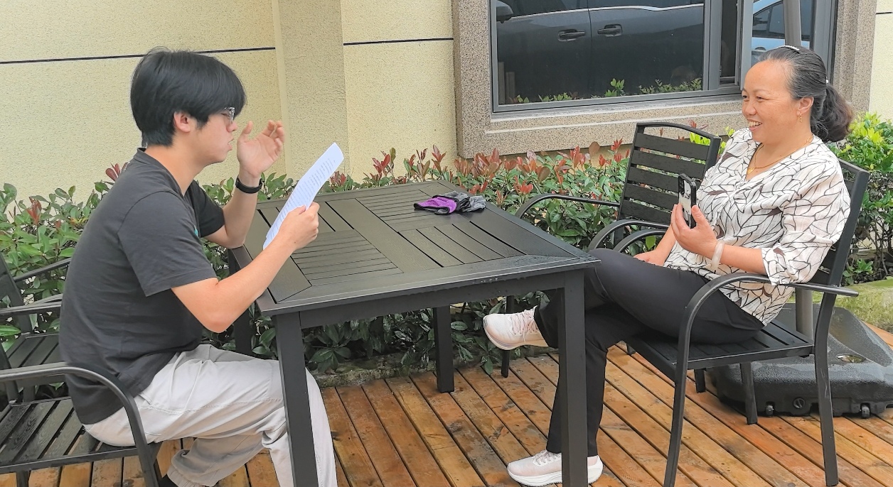 圖為團隊成員采訪基地工作人員 方淼攝