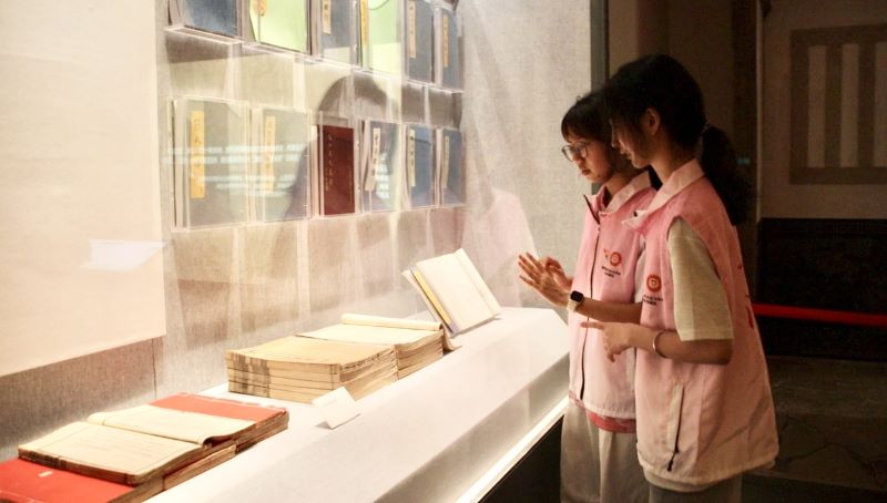 圖為實踐隊隊員在“漳臺一家”展廳參觀閩臺族譜