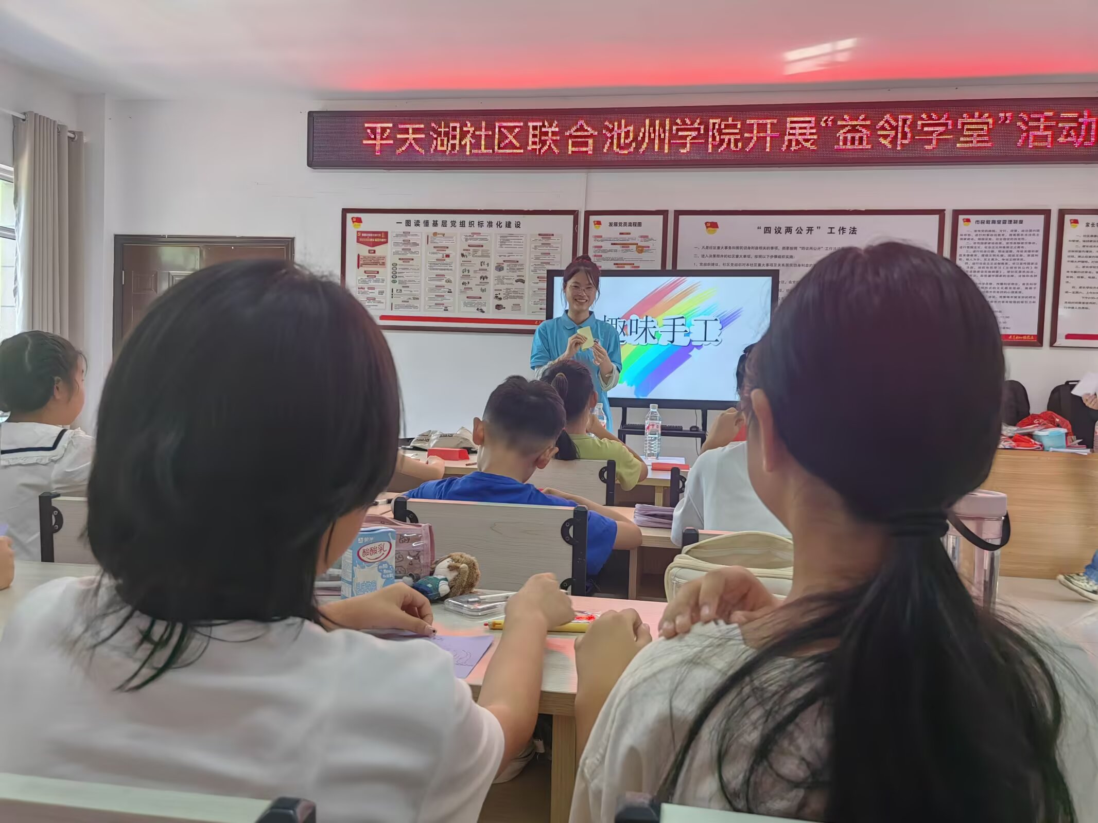 七月一日,赴池州市貴池區(qū)平天湖社區(qū)科教志愿服務(wù)實踐團與池州學院李大為老師一同前往平天湖社區(qū)開啟支教服務(wù)活動。