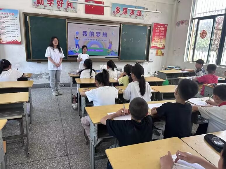 “我的夢想”繪畫課堂化身創意工坊。孩子們以紙筆為舟,暢游未來圖景:白衣天使、航天英杰、教書匠人……斑斕色彩躍然紙上。志愿者引導他們闡述夢想內涵,鼓勵以勤學為基、以堅持為帆。“長大后我想守護家鄉!”一名男孩高舉畫作宣言,稚嫩筆觸勾勒出鄉村振興的希冀。