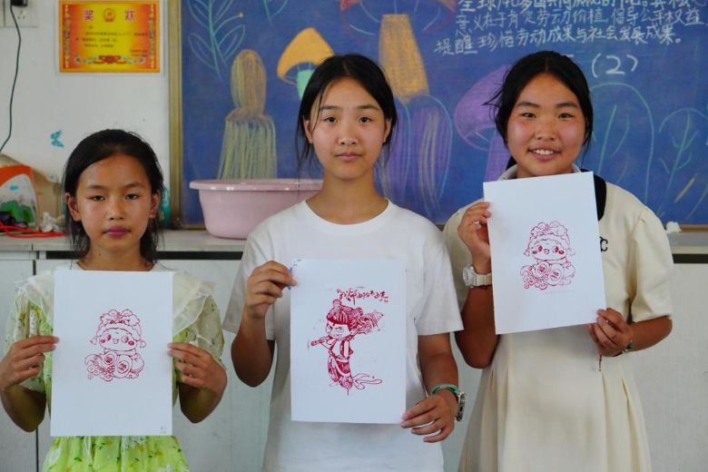 本次暑期少年宮活動(dòng)為期7天,根據(jù)學(xué)員年齡分為A、B兩個(gè)班級(jí),開設(shè)朗誦、舞蹈、英語、繪畫等多元化的興趣課程,并在其基礎(chǔ)上增添了具有中國傳統(tǒng)文化特色的年畫拓印課程,旨在增強(qiáng)學(xué)生們的動(dòng)手能力,全面提升他們的綜合素養(yǎng)。教學(xué)過程中,志愿者們創(chuàng)新性地將專業(yè)特色與中華優(yōu)秀傳統(tǒng)文化相融合,生動(dòng)有趣的教學(xué)方式既激發(fā)了孩子們的學(xué)習(xí)熱情,也讓他們?cè)跐撘颇懈惺苤腥A文化魅力,增強(qiáng)了文化自信和民族認(rèn)同感。