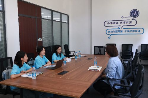調(diào)研團(tuán)還走進(jìn)蘇州市司法局和蘇州市中級人民法院,構(gòu)建對蘇州調(diào)解工作的宏觀理解。在市司法局,調(diào)研團(tuán)與法治促進(jìn)處孫處長圍繞“蘇州市社會(huì)風(fēng)險(xiǎn)治理中的調(diào)解機(jī)制”這一核心議題進(jìn)行深入座談,雙方就調(diào)解工作現(xiàn)狀、特色模式創(chuàng)新、大調(diào)解體系構(gòu)建、多元調(diào)解融合發(fā)展等關(guān)鍵問題展開了熱烈而富有成效的探討。走進(jìn)蘇州市中級人民法院立案訴服大廳,團(tuán)隊(duì)成員親身體驗(yàn)了低位服務(wù)臺(tái)、盲文版互動(dòng)指南、種類齊全的訴訟知識(shí)手冊等充滿人文關(guān)懷的便民舉措,感受著“立案訴服集成一體”的便捷高效。通過專題影片,中院重點(diǎn)展示了自主研發(fā)的“蘇州市社會(huì)治理司法指數(shù)一點(diǎn)通平臺(tái)”,讓青年學(xué)子們直觀而震撼地觸摸到了蘇州基層治理的科技前沿和智慧高度。