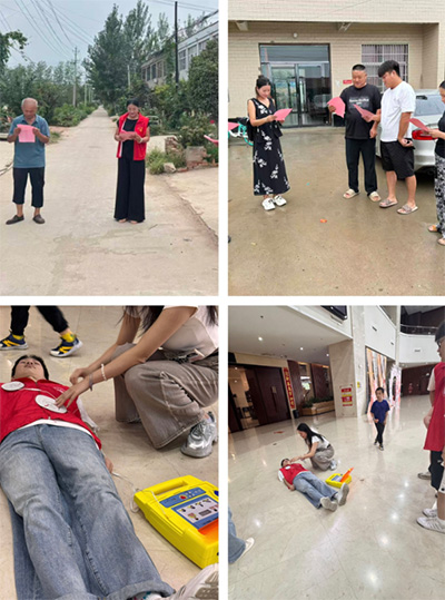 走進社區,團隊結合真實案例,用通俗語言講解心肺復蘇(CPR)流程、氣道異物梗阻解除方法,隨后重點講解了自動體外除顫儀的使用方法,并積極邀請居民協助演示。