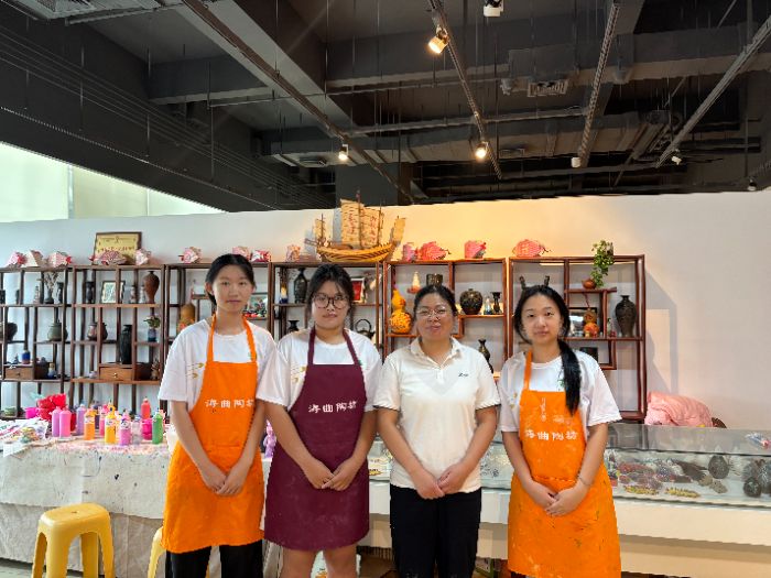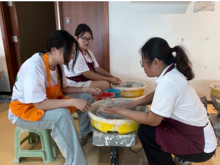 走進古樸的黑陶工坊,泥土的芬芳與歷史的厚重撲面而來。同學(xué)們圍站在工作臺前,在傳承人的悉心指導(dǎo)下,體驗手工制陶的奇妙過程。指尖與陶土相觸,推拉揉捏間,感受著黑陶穿越千年的蓬勃生命力。青年們以虔誠之心對話傳統(tǒng),將青春的創(chuàng)意融入古老技藝,完成簡易的黑陶作品。