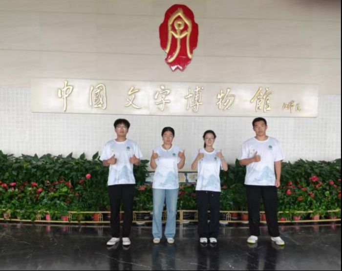同學(xué)們在此駐足良久,體會甲骨文至現(xiàn)代漢字的典型演變流程。一筆一劃間,感受著文字從具象到抽象、從簡略到規(guī)范的演變軌跡,體會著中華文字的獨特魅力。在3D展示區(qū),團隊成員以現(xiàn)代物流學(xué)院為載體結(jié)合中國郵政,書寫創(chuàng)意對聯(lián)。我們,正是站在河岸上的望河者,既要讀懂“河出圖,洛出書”的古老智慧,更要守護這跨越千年的文明信使。